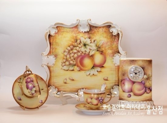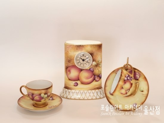 울산포슬린 김민경입니다. 다양한 도자기들에 여러가지 과일을 스케치하고.. 로얄우스터의 풍부한 색감을 표현해 내는 작업이 썩 재미 있어.. 오래 전부터 수업 하는 틈틈이 페인팅 해 놓은 명품 도자기 로얄우스터(royal worcester) 스타일 작품입니다. 아카데미 수업 커리큘럼에도 들어 있어 학생들 수업 지도하며 함께 페이팅 하곤 해요. 새로운 도자기에 디자인을 구성하는 재미도 있고.. 특유의 풍부한 색감이 참 매력적인.. :) 더 많은 구성을 해 놓을 예정이라 추후에 완성되면 다시 또 포스팅 하도록 할게요.
