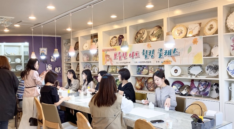 울산포슬린 [김민경포슬린] 포슬린아트 - 감정노동자를 위한 생명존중사업 ‘포슬린아트 힐링클래스’ 울산광역시 간호사회 포슬린 힐링클래스. 감정노동자를 위한 생명존중사업의 일환으로 다양한 직업군을 가진 이들의 직무 스트레스 해소 및 힐링을 위해 준비한 포슬린아트 수업이에요. ?그림 그리는 걸 어려워하시는 분들도 재미있게 할 수 있는 수업으로 준비했어요. ?